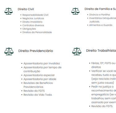 Serviços jurídicos com ética e excelência em diversas áreas do direito.
